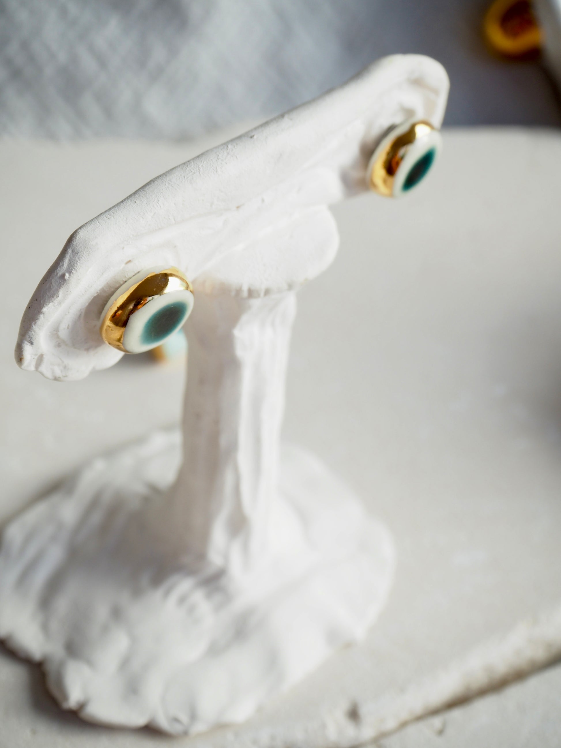 Gioia Porcelain earrings with 24k real Gold lustre hand painted details.