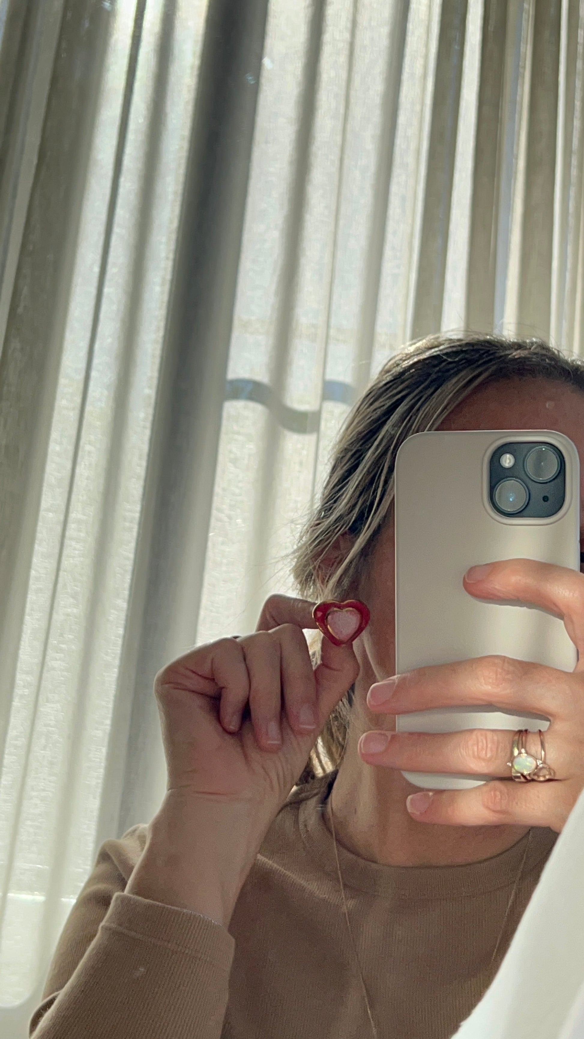 Porcelain Heart Earrings in Red and Light Pink glossy glazes & 24k Gold lustre rim